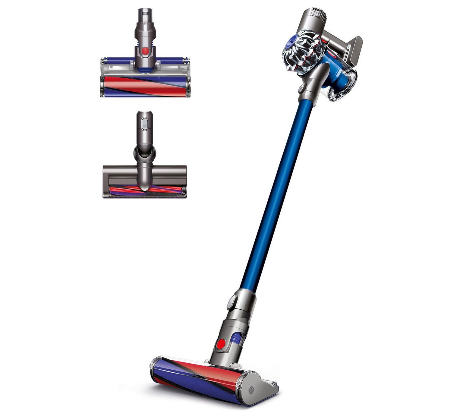 The Dyson V6 Fluffy is specifically design for homes with a variety of floor types and comes with an additional cleaner head specifically engineered to capture larger debris on hard floor